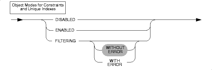 The table must be a local table. You cannot set the object modes of objects defined on a temporary table to the disabled or filtering modes. For information on the privileges required to change the object mode of the objects defined on a table, see "Privileges Required for Changing Object Modes".