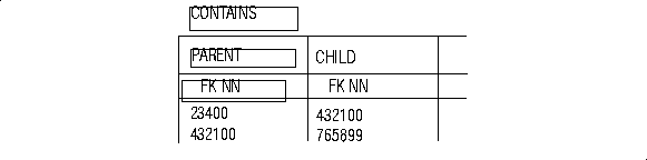 This SELECT statement returns one row for each line of descent rooted in the part given as top_part_number. Null values are returned for levels that do not exist. (Use indicator variables to detect them.) To extend this solution to more levels, select additional nested outer joins of the contains table.You can also revise this solution to return counts of the number of parts at each level.