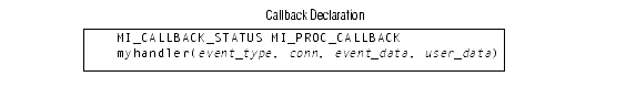 The MI_PROC_CALLBACK modifier follows the callback return type and precedes the callback name. Figure 10-2 on page 10-19 shows the location of the MI_PROC_CALLBACK modifier in the declaration of the myhandler() callback.1fs