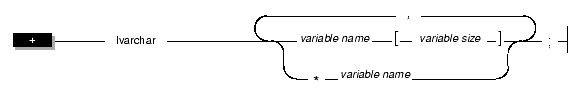 To declare an lvarchar host variable for a character column (CHAR, VARCHAR, or LVARCHAR), use the lvarchar keyword as the variable data type, as the following syntax shows.