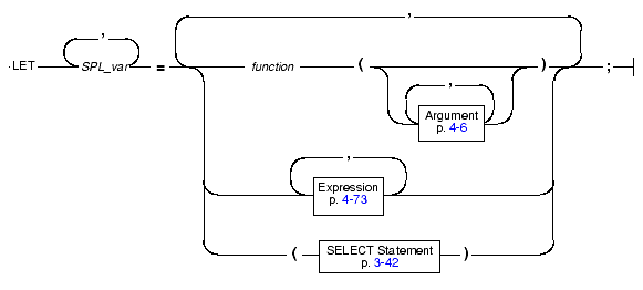 Use the LET statement to assign values to variables or to call a user-defined function from an SPL routine and assign the return value or values to variables.