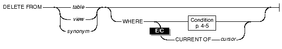To use this diagram to construct a statement, start at the top left with the keyword DELETE FROM. Follow the diagram to the right, proceeding through the options that you want.