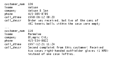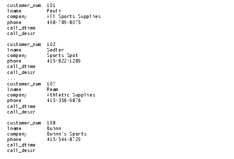 The addition of the keyword OUTER before the cust_calls table makes it the subservient table. An outer join causes the query to return information on all customers, whether or not they have made calls to customer service. All rows from the dominant customer table are retrieved, and null values are assigned to columns of the subservient cust_calls table, as Query Result 5-15 shows.