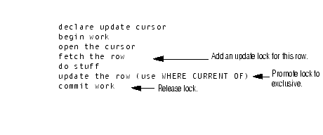 The pseudocode in Figure 9-1 shows when the database server places and releases locks with a cursor.