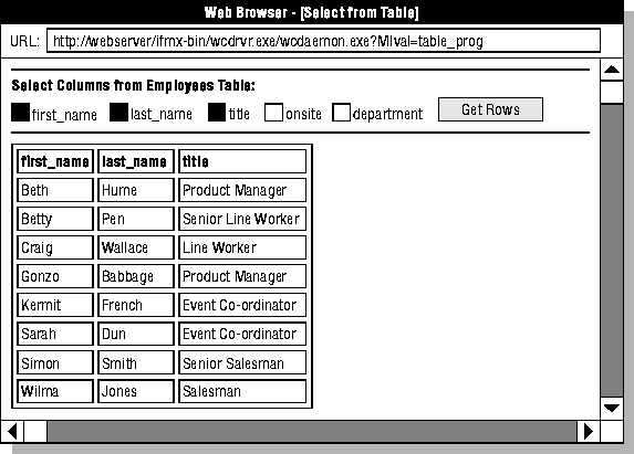 In the following example, the columns of the employees table are displayed as a check box list. The user is to check one or more columns of the employees table to be retrieved and then submit the form.